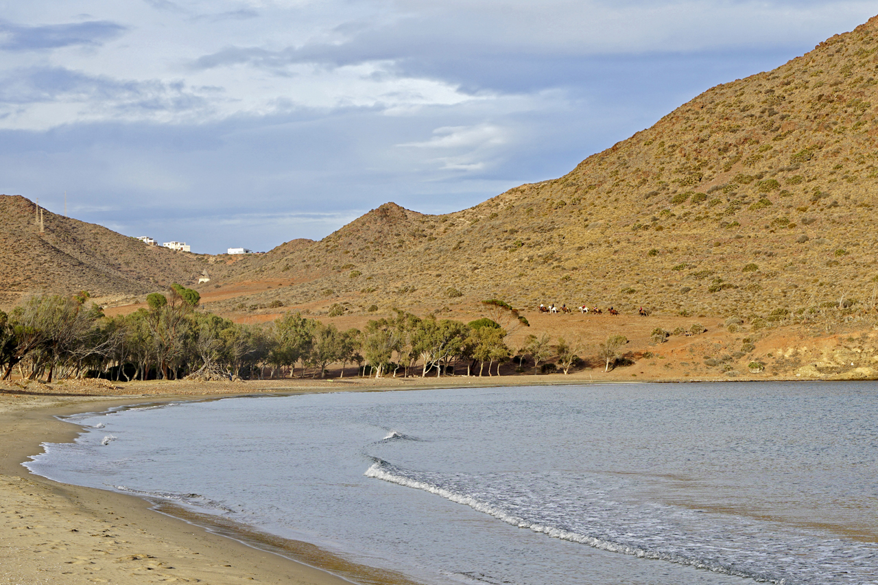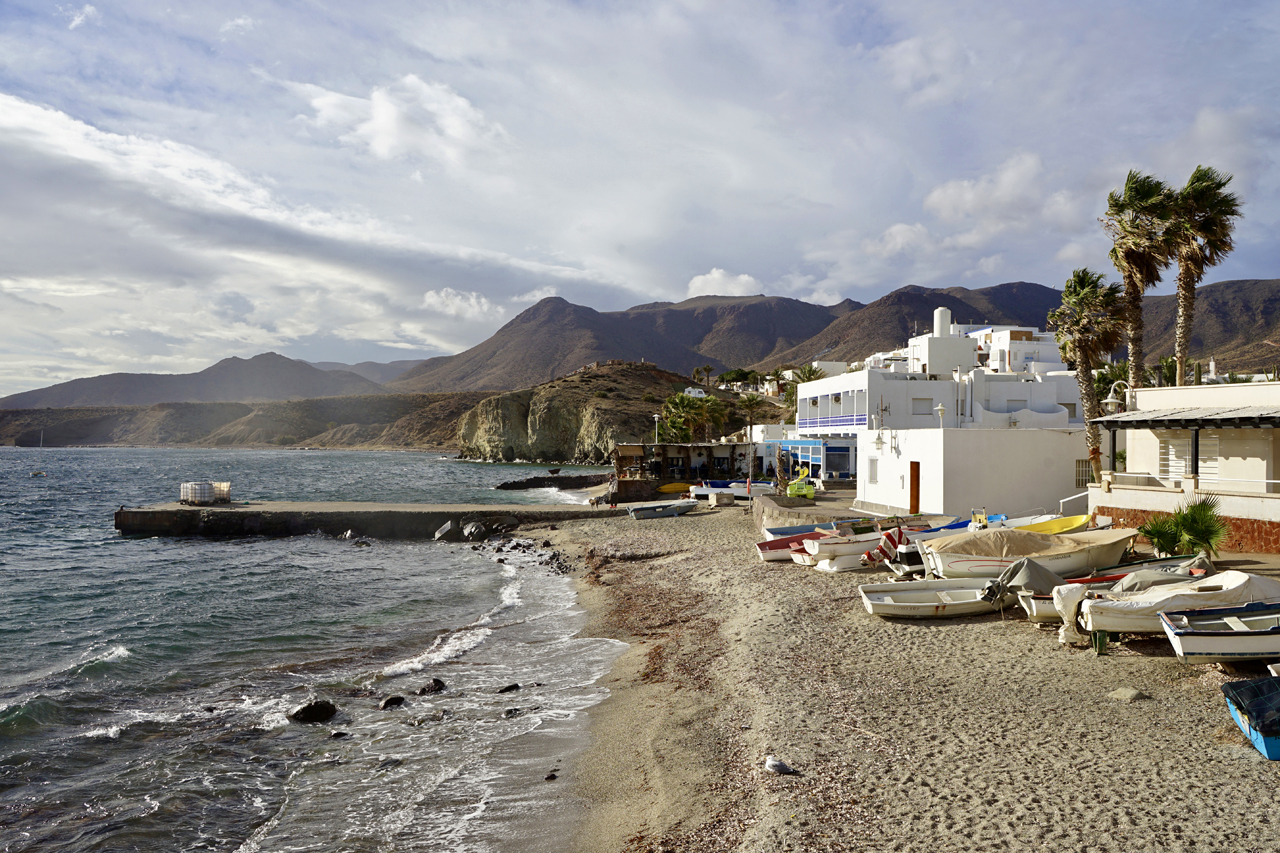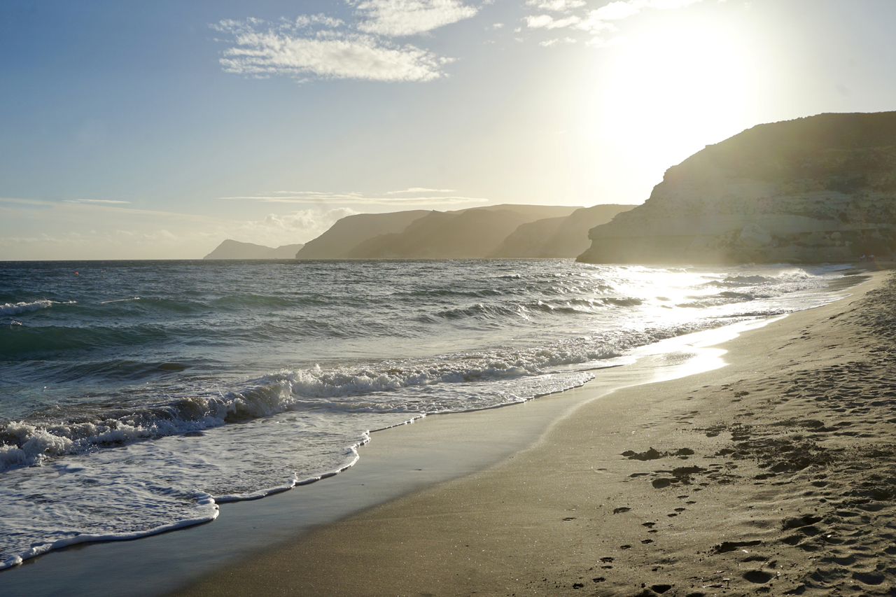 Grazil und rau zugleich: Es gibt tatsächlich immer noch wunderschöne Naturstrände, an denen man (fast) seine Ruhe hat, in Andalusien. Cabo de Gata, ein landschaftlich wertvoller Küstenstreifen an einem der letzten unverbauten Küstenabschnitte des Mittelmeeres und ein naturbelassender Ort, der seinen urigen Charme bewahrt hat. Auf der einen Seite ist der Cabo de Gata in Spanien ein Naturpark unter vielen. Und dennoch ist die Landschaft etwas Besonderes, die von vulkanischen Bergen und Halbwüsten gesäumt wird. Landesweit ist diese Region das letzte unverbaute Areal der andalusischen Mittelmeerküste. Hier habe ich Ursprünglichkeit in Vollendung erlebt: wilde Steilklippen, ein sauberes Meer, lange Sandstrände, abgelegene Felsbuchten und kleine Ortschaften. Die Feldwege führen durch ausgetrocknete Flussbetten, vorbei an stillgelegten Gleisen und über erloschene Vulkane und Sandstrände quer durch den Park. Die innere Leere des Sinnsuchenden findet unter anderem hier seine Entsprechung. Es ist nahezu fast ausgestorben. Man ist allein an einem riesigen Strand. Keine Bar und eine Weite, die man nicht gewohnt ist. Der Massentourismus hat die Region wohl noch verschont und doch weht ein sanftes Lüftchen, das in einigen Nischen schon zu den andalusischen Blütezeiten wehte und womöglich heute davor steht, aufzufrischen. Die Gebirgskette Sierra de Cabo de Gata ist vulkanischen Ursprungs. Das Kap Cabo de Gata ist am südöstlichsten Zipfel der Provinz Almería gelegen. Dieser 1997 zum Biosphärenreservat erklärte Naturraum umfasst den gesamten Naturpark Cabo de Gata-Níjar sowie einen Teil von dessen Umgebung. Das Gebiet wurde auch zum besonderen Vogelschutzgebiet (ZEPA) erklärt und als bedeutendes Internationales Feuchtgebiet in das Ramsar-Abkommen aufgenommen.